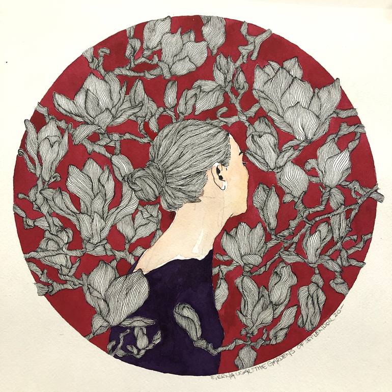 Art Nouveau / the gardens of seplendor no:20 30x30 cm (unframed) ink drawing and acrylic ink painting on Arches watercolor paper