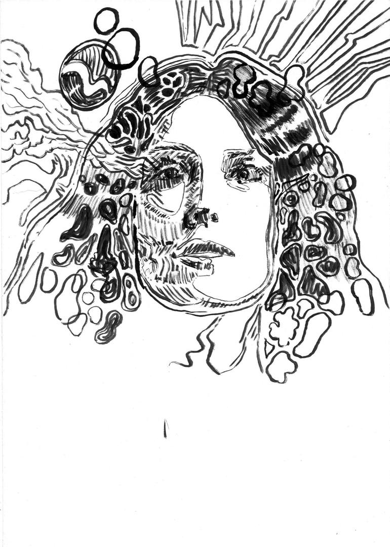 This works is a portrait of a great Portuguese singer - Ana Bacalhau - she's such an icon for me. I consider her at the forefront of a revolutionary sound that simply takes the old traditional music fado and turns it into a cool kind of upbeat traditional rock music. So this is her crossing her eyes...