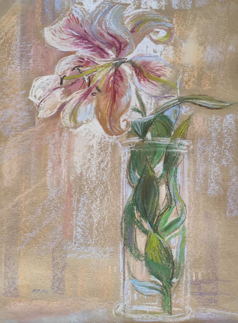 The painting is made of nature with dry pastel. This wonderful lily was raised by my sister in her garden. She was so great I had to capture her. For ease of transportation, the painting is decorated in a light plastic frame and passport for acrylic glass.