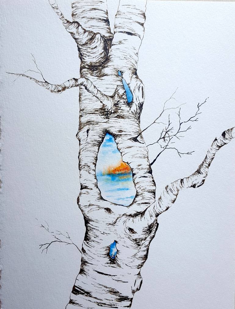 Ever since I was a child, I imagined micro worlds happening in small crevices of trees. This series stems from that concept but with larger landscapes within the tree. These are created by painting the landscape first and then building the tree around it. The color landscape is watercolor and the ...