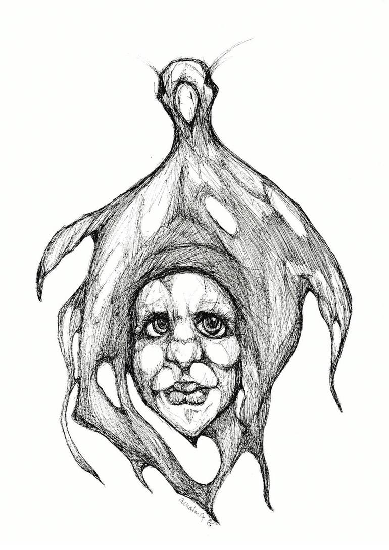 Original black ink drawing on very good quality A4 size watercolor paper was created just from my head...weird??