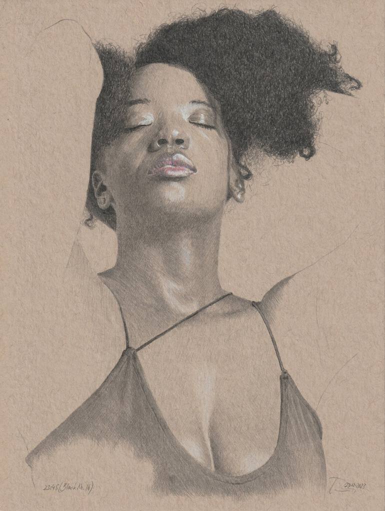 In order to eliminate any misunderstandings straight away. The title does not refer in any way to the skin color of the model, but is the name of the series! Her hair and her great face just “captured” me. Drawing is on tan toned Strathmore cardboard.