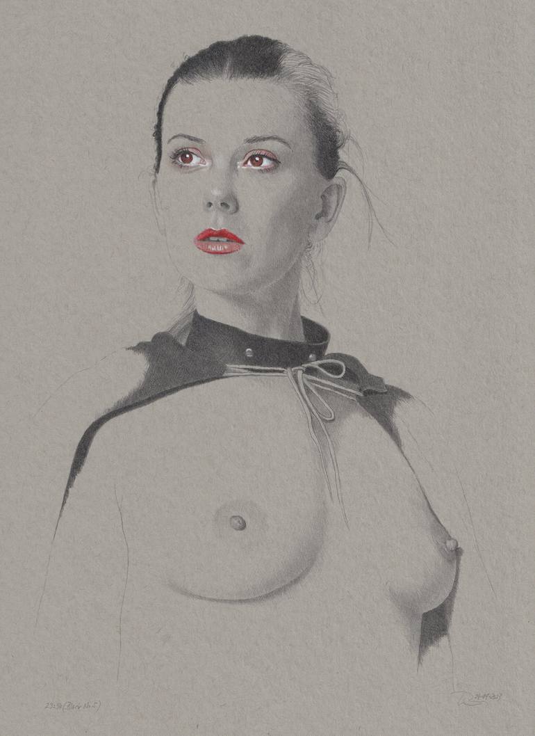 I love it: red lips and black hair (black cape too) and her face expression! Drawing is on grey toned Starthmore cardboard.