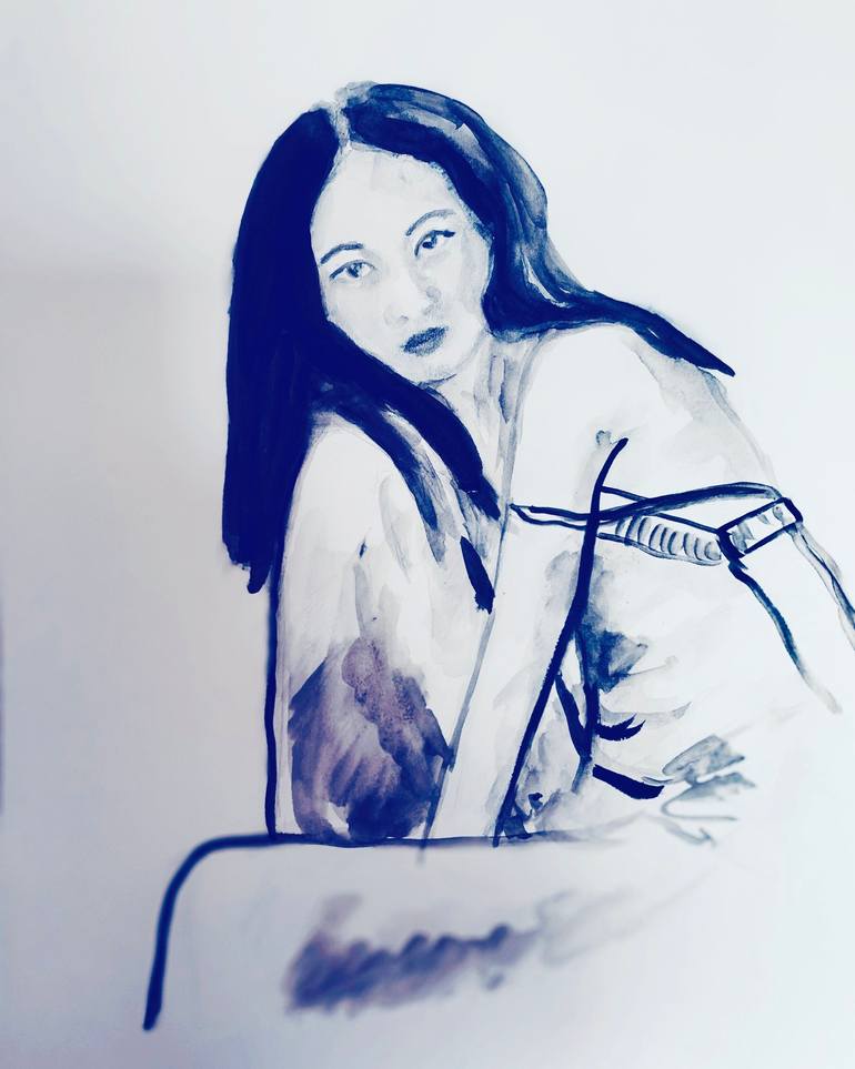 Fashionillustration inspired by a loro piana add. Calmth, beauty in black in white. Japanese kuretake ink on high quality canson paper.