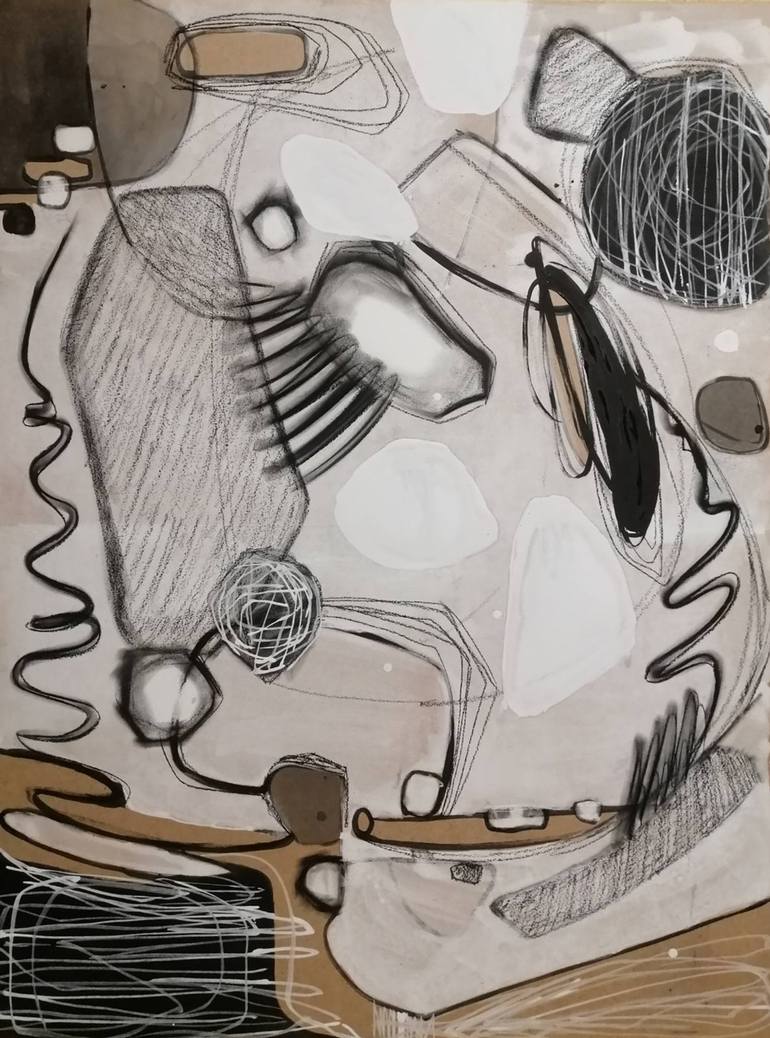 it is always interesting to create abstract works limited to black and white. This creative piece is painted on heavy cardboard using white acrylic for the background and abstract wavy lines. different textures of the material always inspire the creation of new art objects.