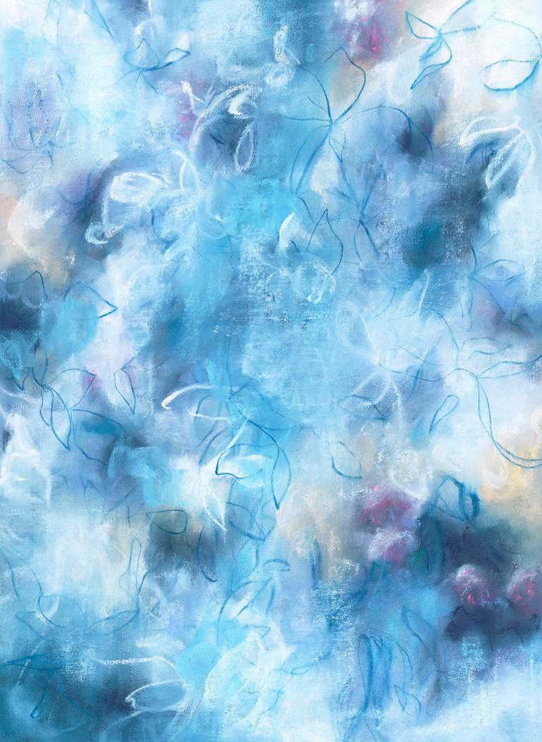 Blue Wild Flowers is a contemporary nature inspired mixed media piece. There are areas in the drawing where I have combined bold applications of striking colors with lighter blending to get softer variations between color shifts. In person, "Blue Wild Flowers" is full of texture, movement and layers...
