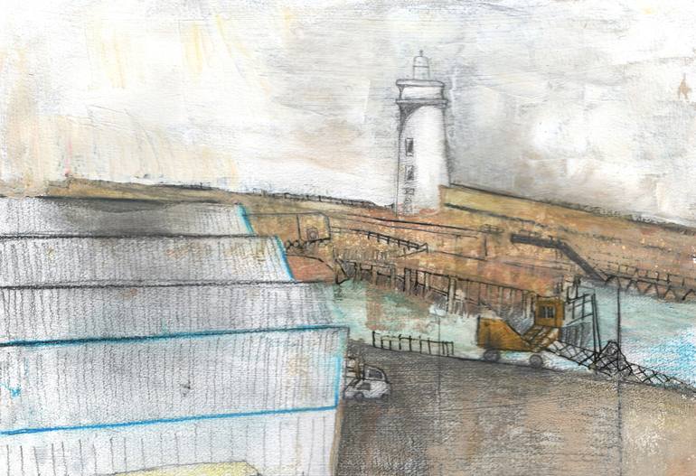 Buckie a fishing village on the North East of Scotland. A mixed media artwork on paper.