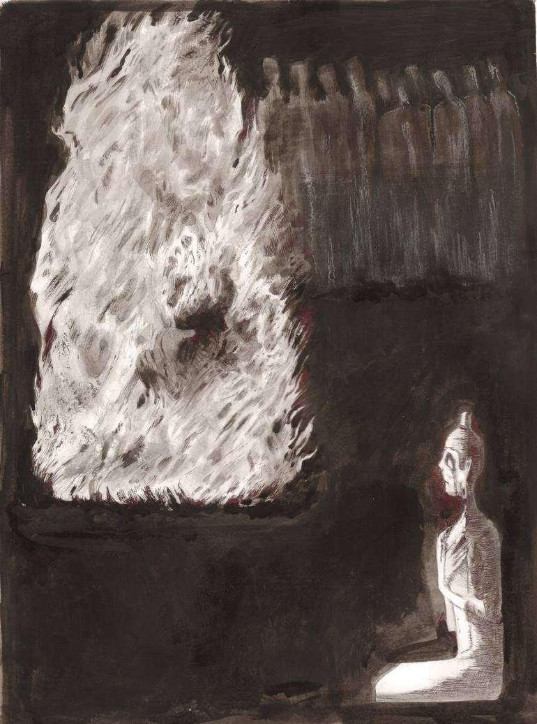 The image was inspired by self-immolation of buddhist monks.