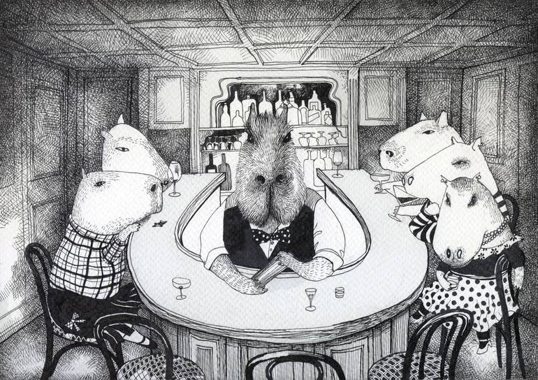 This group of lovely capyfriends love to gather in the evenings at their favourite bar. Their friend works as a barmen so he always offers them free drinks!