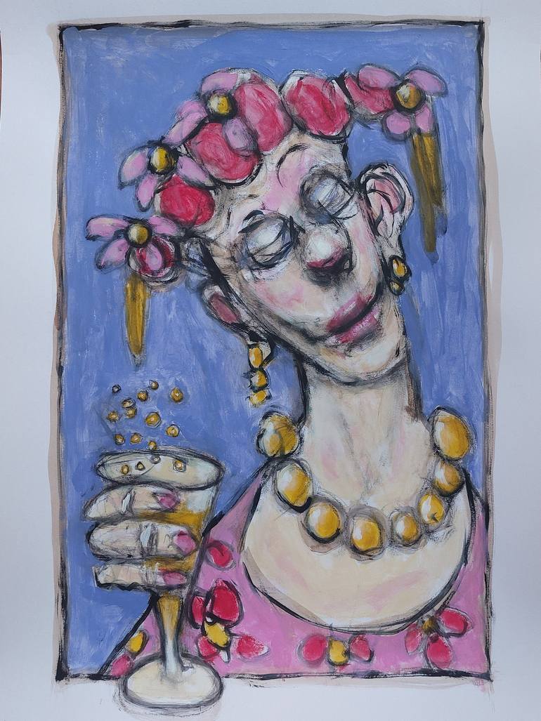 A woman drinking champagne, and loving that... do you want to drink too ? An imaginary work Acrylic on paper 250gr