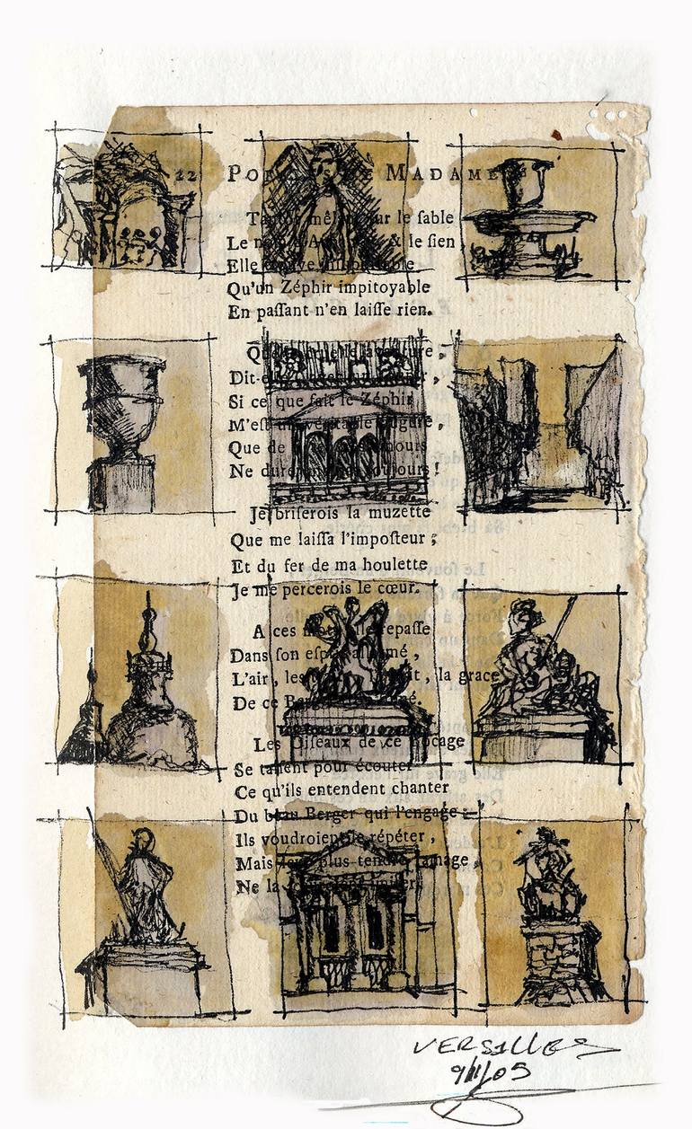 Vignettes sketching walking around the Chateau de Versailles.