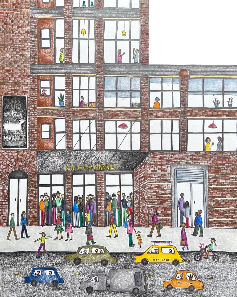 Chelsea Market through the eyes of an Australian. Hand drawn with pencil on paper.