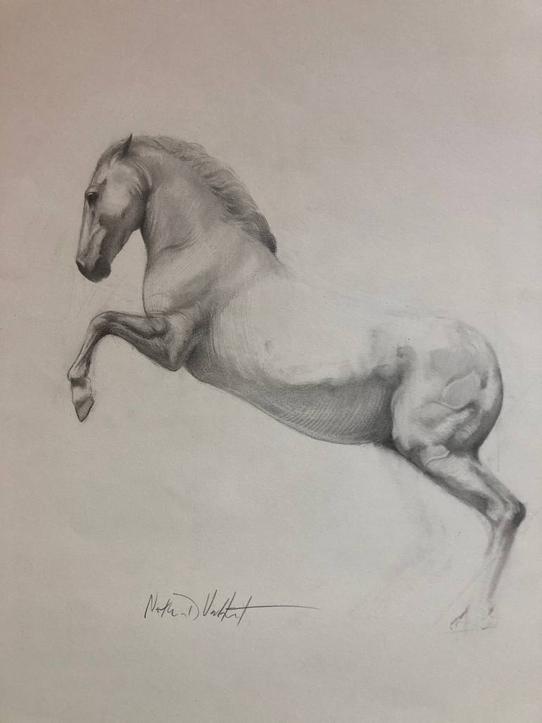 A drawing of a horse I had hanging in my old farmhouse. Some imperfections such as slight creases are visible due to rescuing the piece from a storm. Actual drawing measures about 9” to 9” on paper. Room to cut if desired.