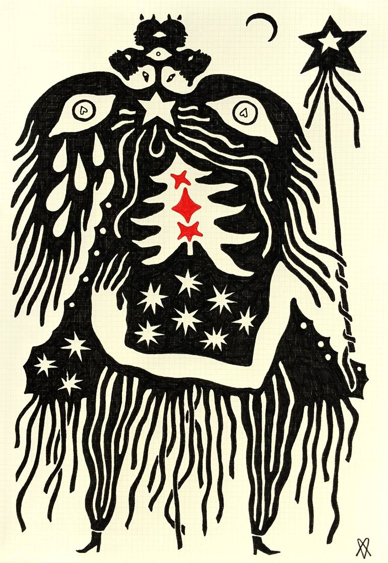 Maria Mylenka (alias moonolog) is a Ukrainian artist, currently based in Canada, with architectural background – both academically and genetically – and a self that is in a continuous and accelerating flux, drawing being perhaps the only constant in her life.. *I shall switch to first person here* My creative practices range from drawing and painting to digital art, tattooing and wood-turning; through my art I – largely subconsciously – explore topics of femininity and physicality, supernatural and spiritual, mental health and “everything that’s wrong with the world” through a lens of sarcasm and stoicism. These and other themes are, of course, also subject to change as my interests progress and change. I often find myself being heavily influenced by people, places, things – a book I am reading at a given time, a city I’m in, external global events, personal internal turmoils, random hyper-fixations, and a million other factors. Despite drawing constantly, with and without a reason, since early childhood, it wasn’t until the beginning of 2020 that a shift in consciousness happened for me, and I realized and began embracing my nature as an Artist, along with the fact that making art – in whatever shape or form, but primarily drawing – is a calling, as opposed to just some silly hobby, which I considered it to be for far too long. My works are mostly minimal and can be [subjectively] characterized as weird, naïve, dark, seemingly nonsensical. I practice art as a sort of self-therapy and a coping mechanism. Art for me is, in fact, a cry for common sense and adequacy, which – quite counter-intuitively – often calls for confusing and chaotic forms.