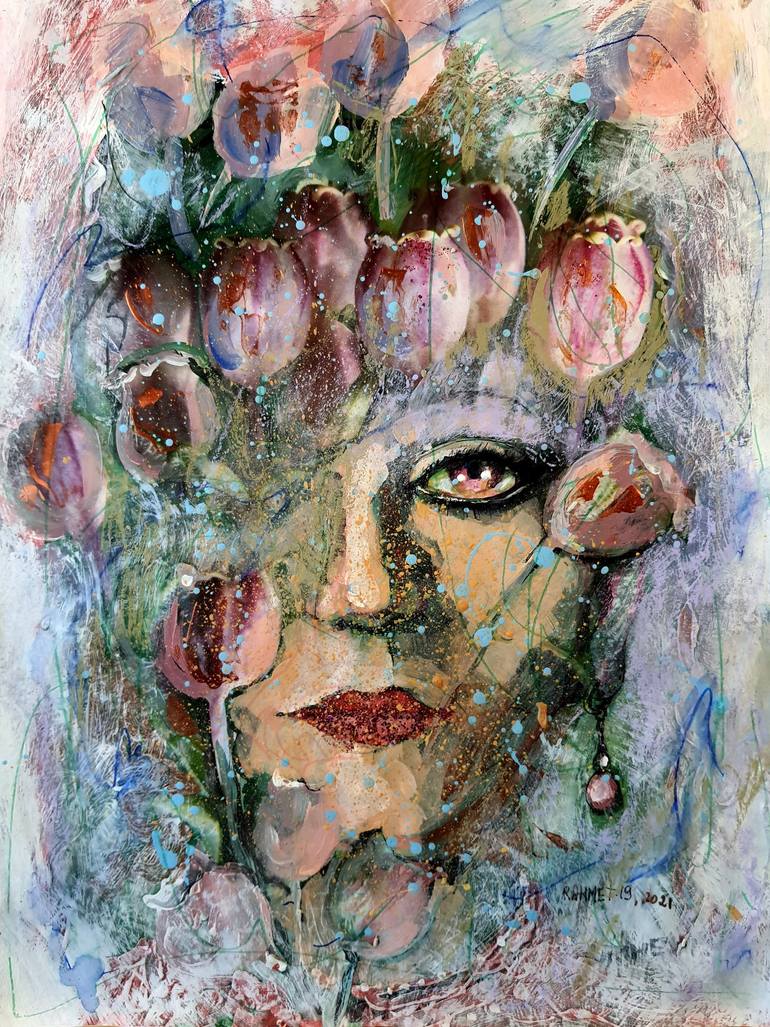 From the series "Flowers and Women" The picture was painted with mixed media, a palette knife and a brush on thick paper. To hang on the wall - you need to insert into a frame or arrange as a graphic. ---------------- Flowers and women are the smile of the sun that brings joy. When you think about...