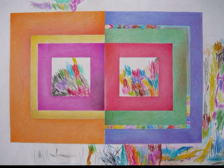 Drawing on paper with colored pencils