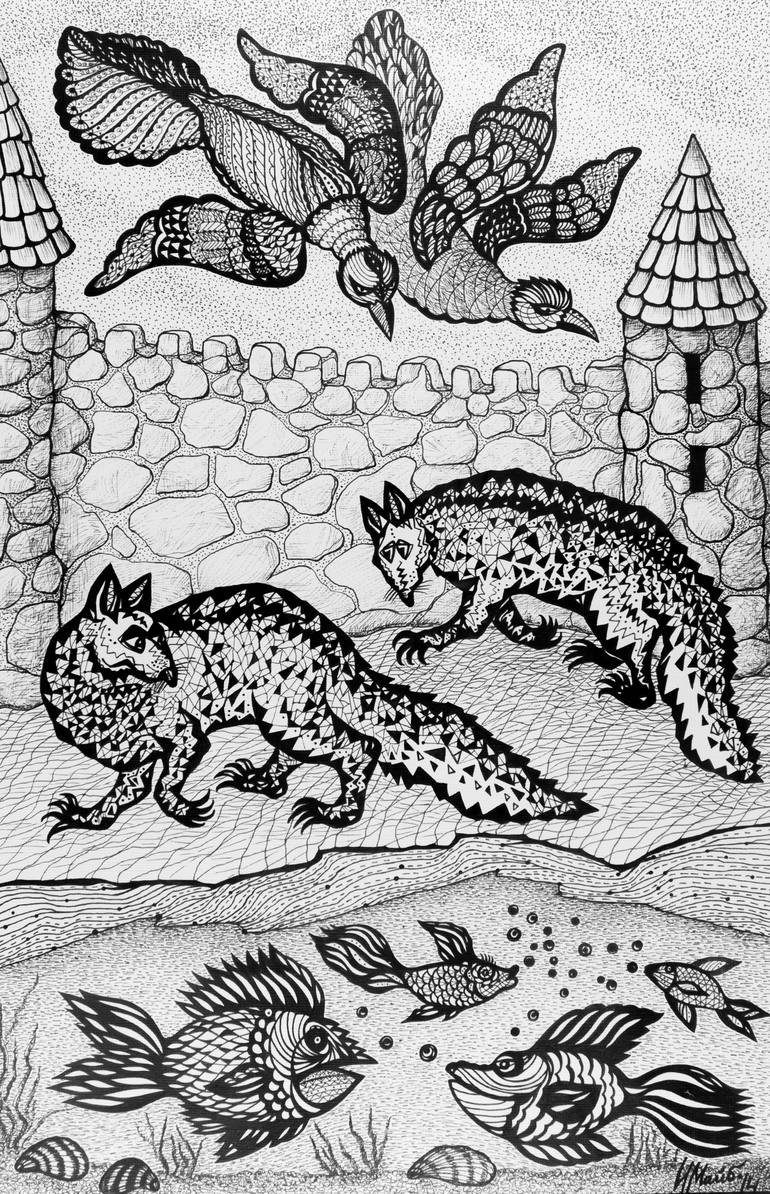 Creatures of Earth Sea and Sky. The work is under a passe-partout 50x40 cm.