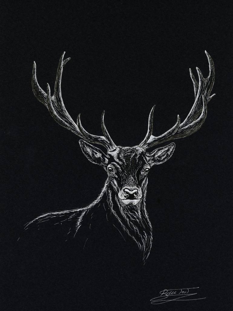 A stoic stag captured in sketch form on a black background