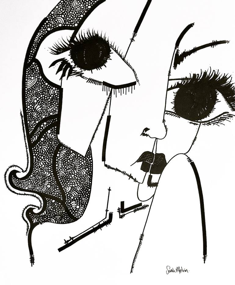 Sarah Melvin is an Australian Artist, currently living in the Encinitas area of Southern California. Drawing on both surrealism and expressionism, Sarah’s black and white portraits appear detached from reality. The disconnected and exaggerated facial features that distinguish her art combine to achieve unexpected and mysterious abstracts of the human form and are communicated through ink, acrylics and mixed media on canvas and aquarelle paper.