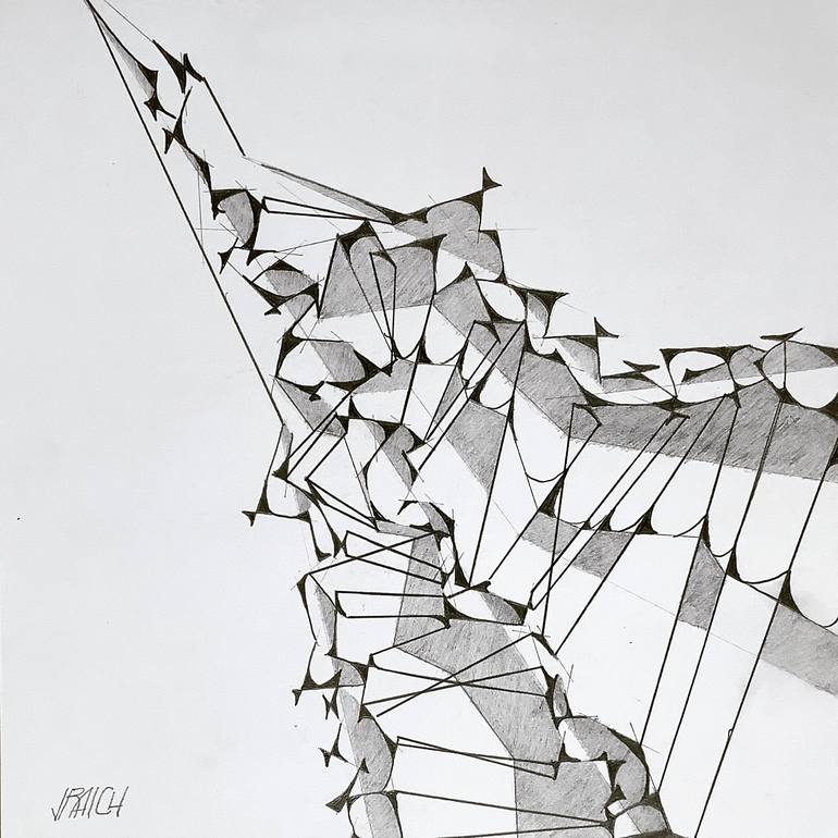 Abstract drawing that represents a piece of glacier in the process of detachment, caused by global warming. It is made with 2H, HB, 2B and 4B pencil on opaline paper.