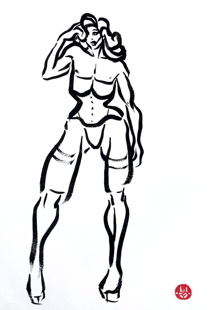 This "DIVA" Series was created during COVID Quarantine 2020 to support models and actors via online posing sessions. I choose Chinese Ink and brush to create these fast sketches and to express the beauty of the human body and amazing personality of models.