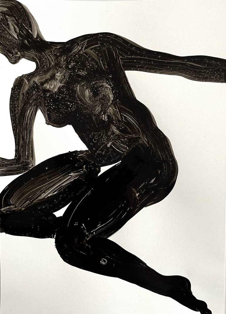 Woman body painted with almost one brushstroke from memory. Position of the body expresses deep emotions.