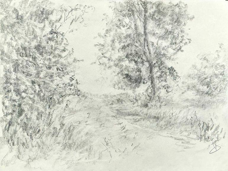 Small 9x12 inch impressionistic pencil sketch. Peaceful.