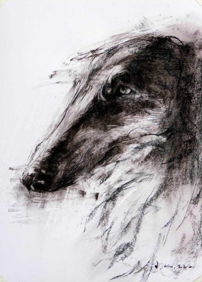 Portrait of a noble breed of dog. The drawing expresses the deep look of an intelligent and devoted friend.