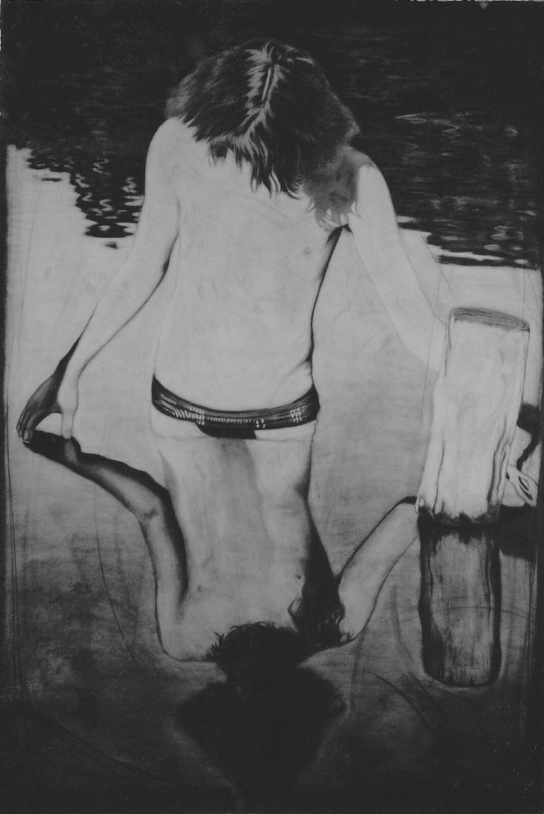 E Pluribus Unum.....out of one, many. An adolescent boy stands in a lake observing his reflection. The boy and his reflection become one.