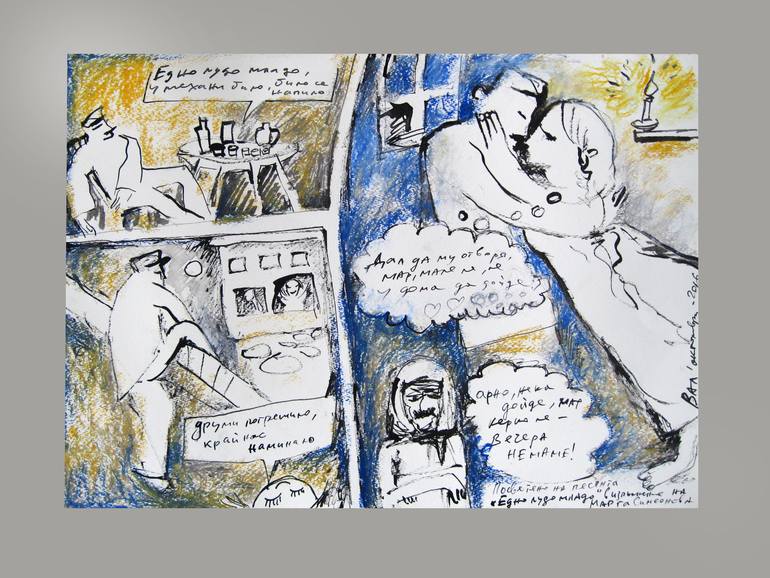 That work it’s a part of a cycle of drawings “The Lost Music of My Land”. Inspired and dedicated to some old and unknown recordings of Bulgarian folk songs from the 1930s. This record is from Larry Weiner’s collection. The interesting thing in this drawing is that it became like a comic book.