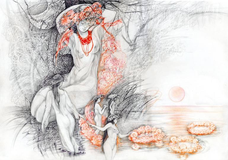 Ethno calendar. Summer. Night on Ivan Kupala. Drawing