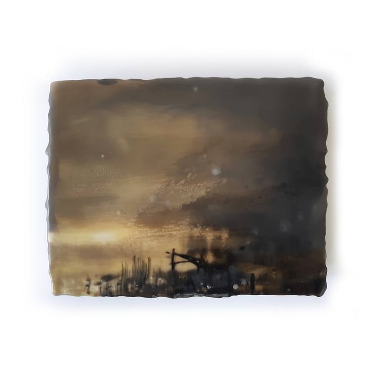 Painting: Beeswax and pigments on panel My paintings resemble pictures which are covered with a layer of ice. Through the use of beeswax, the vague layered performances have a transparant and immaterial appearance. It also makes the painting more into a wall object. The warm wax with pigments flow through and over each other to show that I often do not know where it will go, at least initially. It is the material that asks me what to do. Images that I can not immediately fathom, intrigue me often more than a picture that tells a clear defined message, or complete story. The presentation should tell a story raising questings for the viewer, or just be there with something you want to leave: emotion, thoughts, or memories. This way I also work on my paintings, I build up the leayers like some kind of labour in which memorial images are part of the painting process.