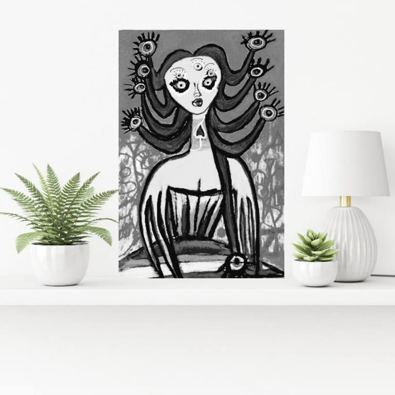 The painting is drawing once with colored pencils and pastels and then painting is made with digital colors with a multilayered approach .I use classic colors painting techniques digitally,resulting in vibrant colors and a long-lasting piece of art.The painting is created by hand on a,digital device...