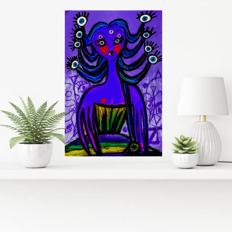 The painting is drawing once with colored pencils and pastels and then painting is made with digital colors with a multilayered approach .I use classic colors painting techniques digitally,resulting in vibrant colors and a long-lasting piece of art.The painting is created by hand on a,digital device...
