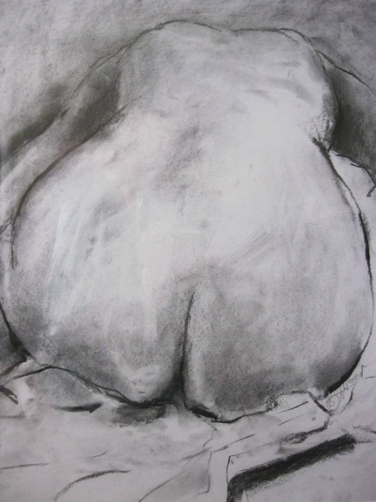 This drawing was completed at a Life Class. The model was huddled in an embryonic like state. I made a decision to draw from an unusual angle, drawing and accentuating the rear, and not without a bit of humour.