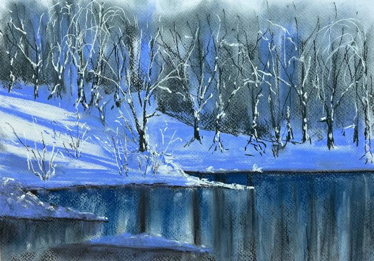 Frosty day on the river. This work was written in soft pastel Fabruary 2025 in Odesa Ukraine, during the full-scale invasion of Ukraine by russia. I care about our environment and nature, so I have to warn you that the packaging will be reused. I care about our environment and nature, so I have t...