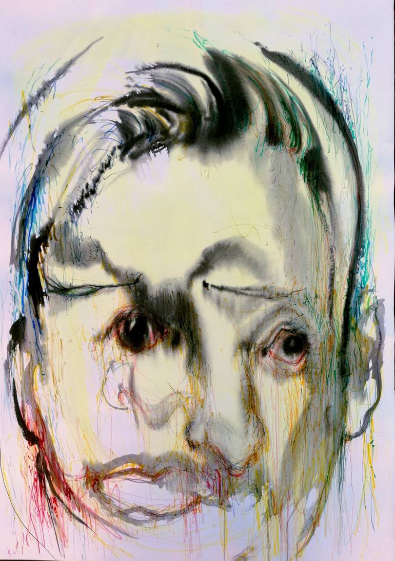 The String Theory series in colored pencils and black ink stages a deep psychological portrait. The artist does not want to aestheticize the work with colors or light effects. He uses the wash and lines of color to deploy a path in space, in the same way that an archaeologist would excavate strata o...