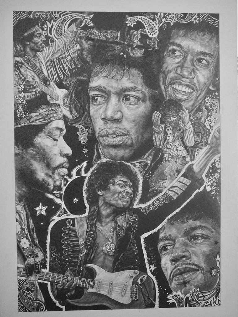 A pencil artist at heart, although now I exclusively paint, pencil drawing takes too much time! Especially when doing collages! My Jimi Hendrix pencil drawing that is drawn mostly in #2 pencil with some conte crayon for extra white highlights.