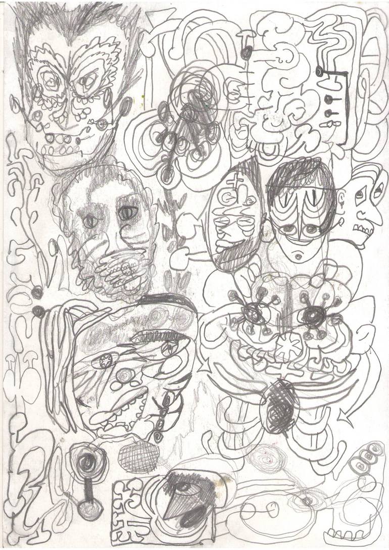 These faces capture my emotional state. I use drawing as a way to quickly translate my thoughts into visual form. Through automatism, I give my ideas freedom, later returning to refine them in more sophisticated works. The drawings serve as a reservoir for new visual approaches, helping me explore a...