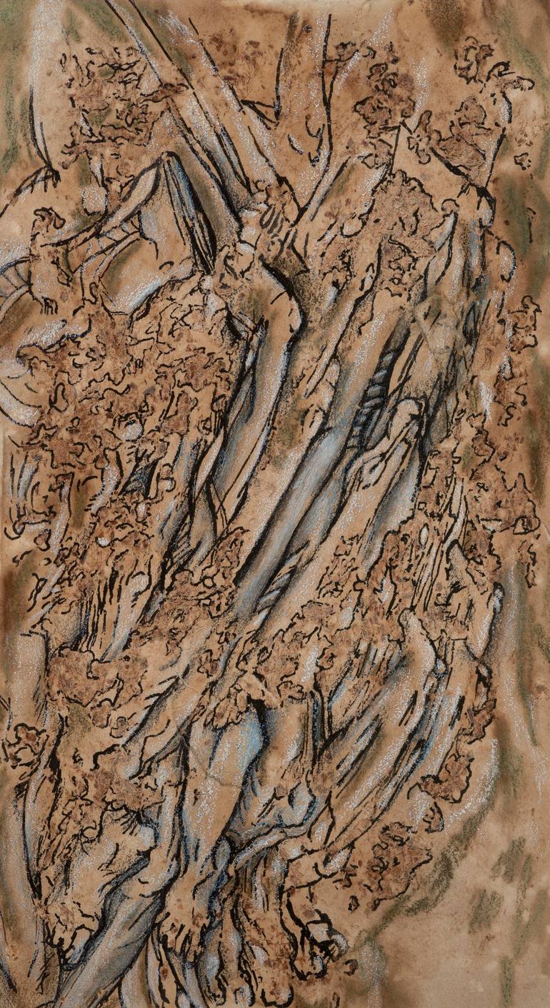 This work is inspired by the emerging human form and the creation of meaning within mundane tasks. This work was inspired by drinking tea and incorporates tea leaves into the drawing.