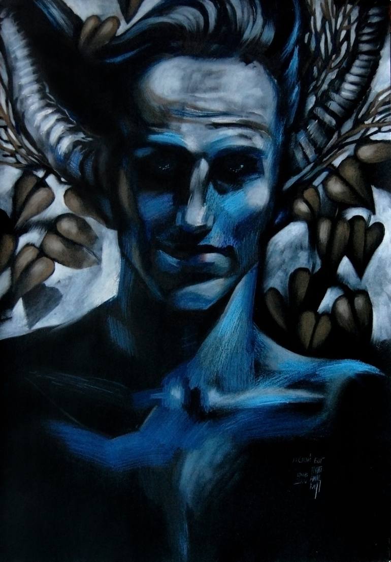 Drawing: Pastel, white chalk and charcoal on rubberized paper.