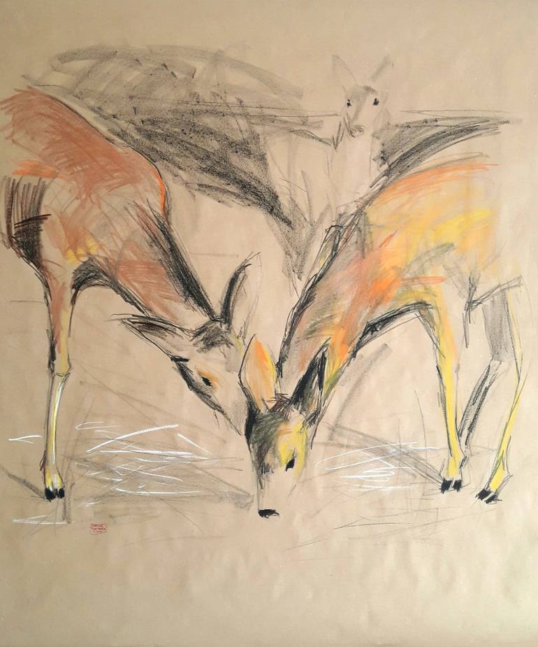 During the new collection of animals in summer 2020 a new size of big drawings arised. Waxsticks on brown 100g paper. Sending in tube.