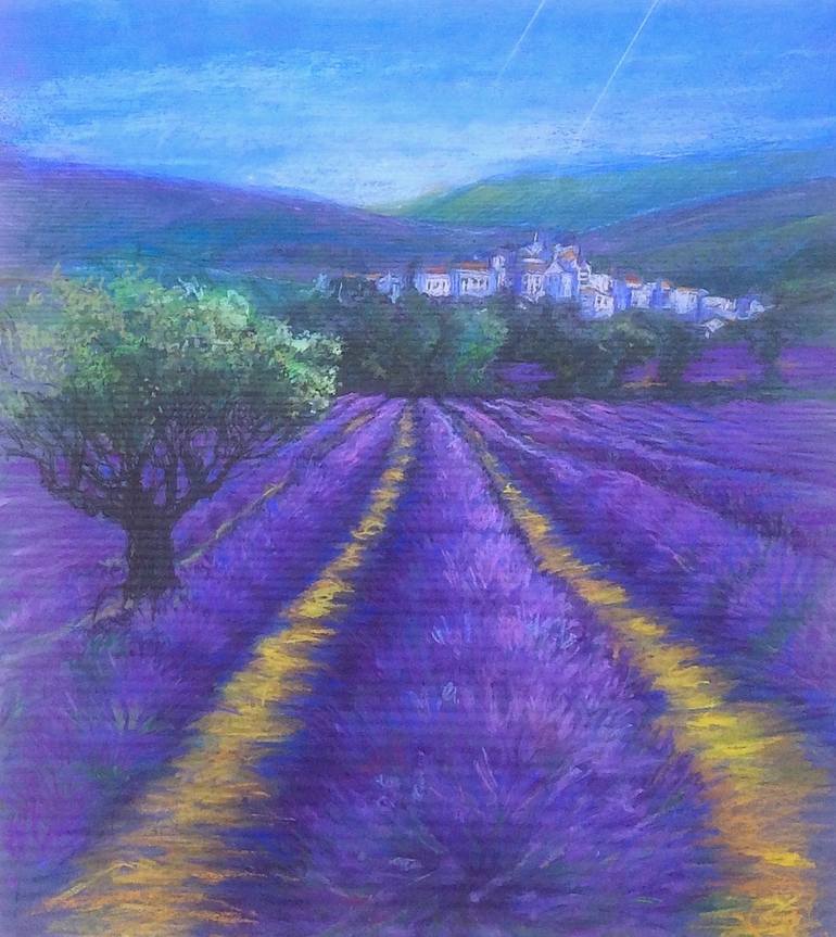 The Lavender fields stretched out before me with the hill top village catching the rays of the sun. Behind the village there are more lavender fields reaching far into the distance. You can almost smell the intoxicating Lavender in the early evening sun. Quick sketches then finishing it off in my s...