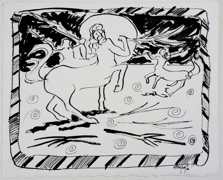 "I've always loved the classics. The twists and turns of the relationships, the treachery, the debauchery, the love, the hate and the wonderful characters. It's sort of like our lives today. This drawing is just one of many of my interpretations of the myth of the Centaurs and Deianira." Stewart Fl...