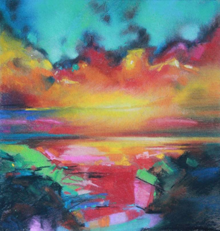 "From Dusk Till Dawn" Drawing, pastel on paper One of a kind work of art Size: 21,5 × 20 × 0,1cm (no frame) • The painting is signed on the back and has a certificate of authenticity. • The painting will be sent to you neatly packed in protective packaging. Thanks for watching!