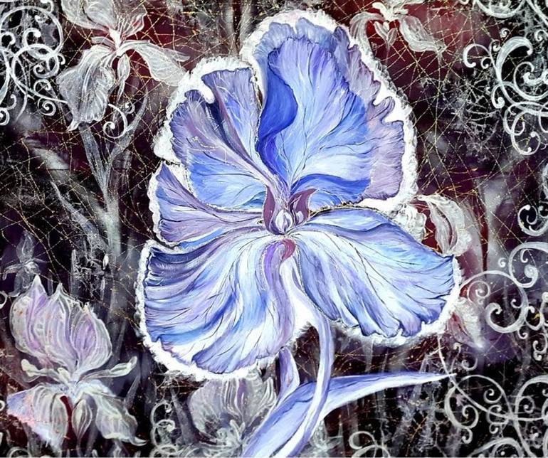 Frozen Iris,wall art,painting on silk,hand made,size 40x40 inch Drawing