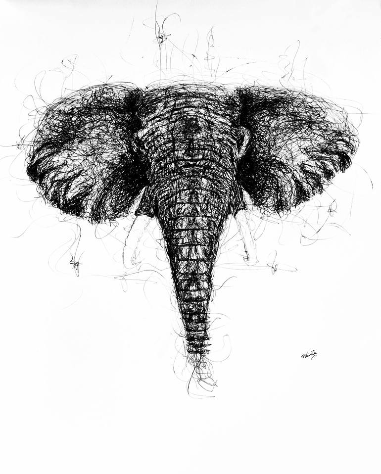 Pen scribble of an elephant.Although scribble art might at first glance look chaotic but it really helps create expressive and dynamic portraits.