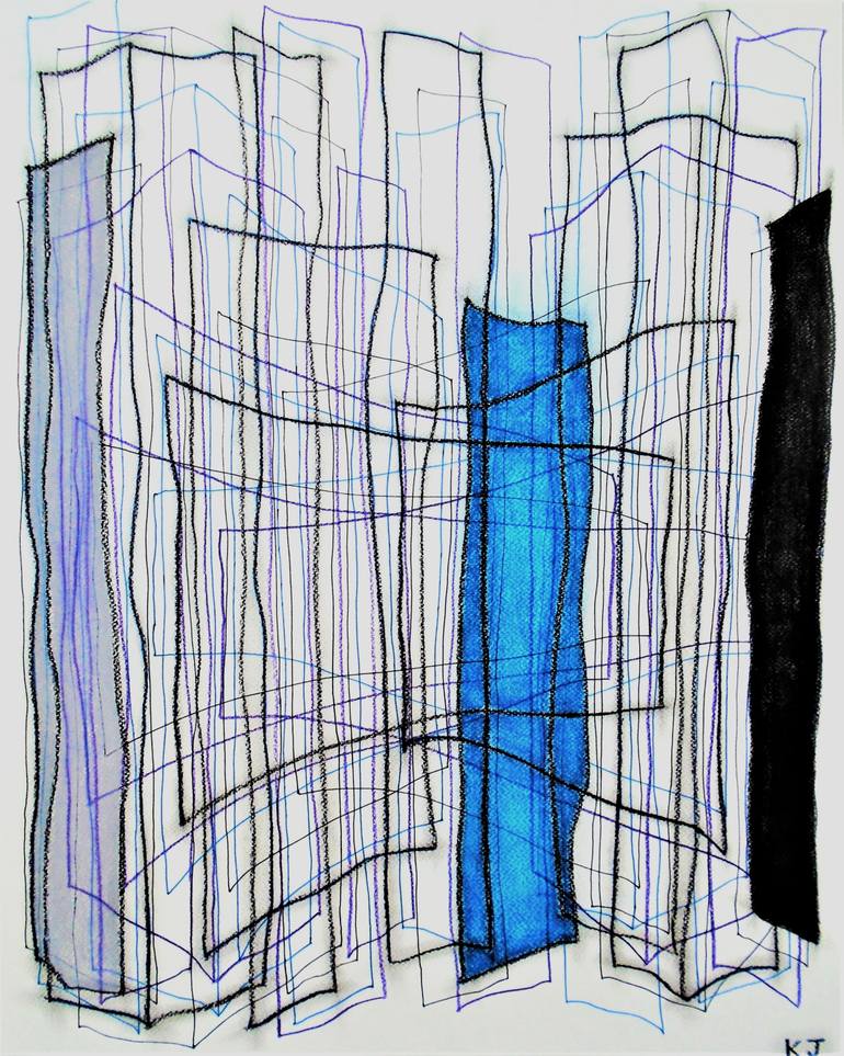 Structural expression inspired by the city; urban contours mixed with three colours. Fixed with professional fixative and rolled between acid-free tissue paper.