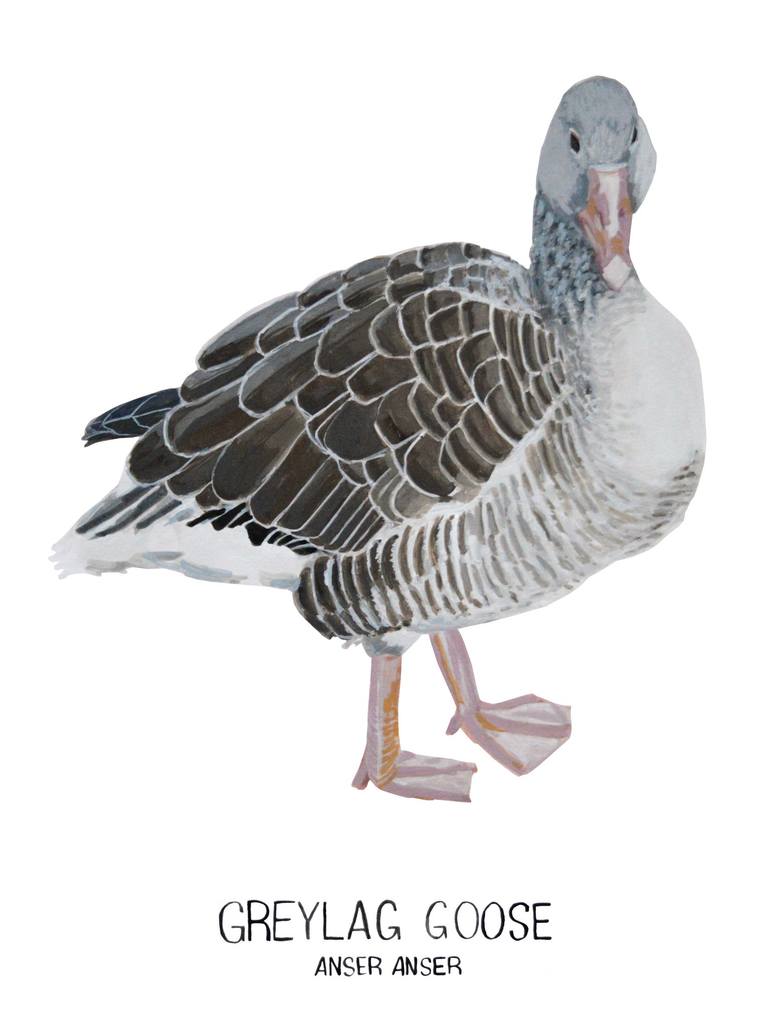 This is an Illustration of a Greylag Goose, she lives in the Animal Park Lange Erlen in Basel, Switzerland