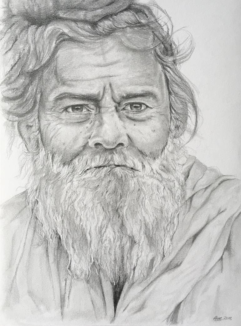 I used a photo of an Indian Guru by Jose Aragones as reference for this drawing. I was intrigued by his weathered face and dreadlocks.
